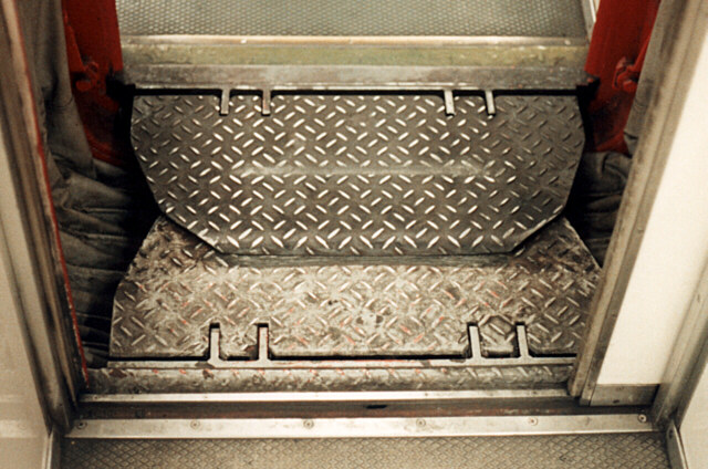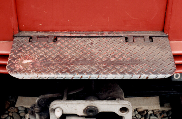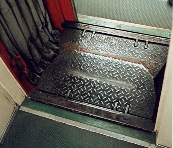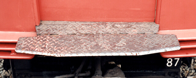 これは、ホーム以外で車両に出入りする時にも使われる。第三軌条のため、出入りは主に正面から行なわれる。連結器左脇の楔形の足場と組み合わせて、容易に出入り出来るようにしている。この足場の取り付け位置が、車両や時期によって異なっているらしい。具体的には、貫通扉すぐ脇と、それと離れた所の2パターンがある。
