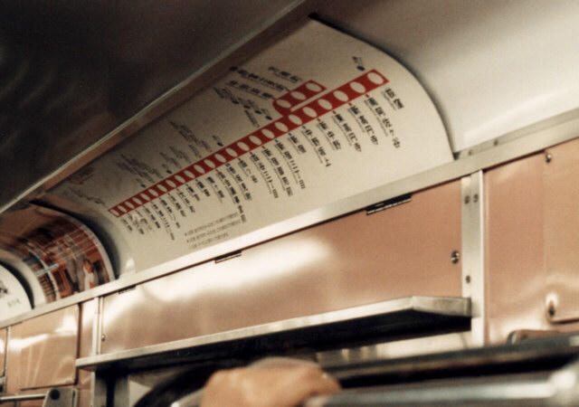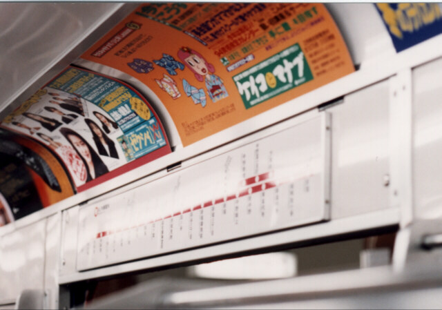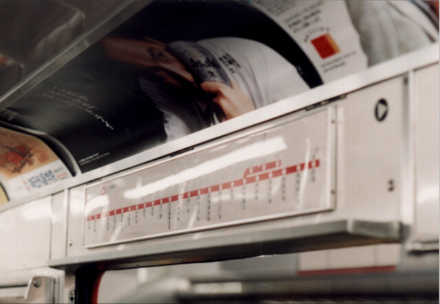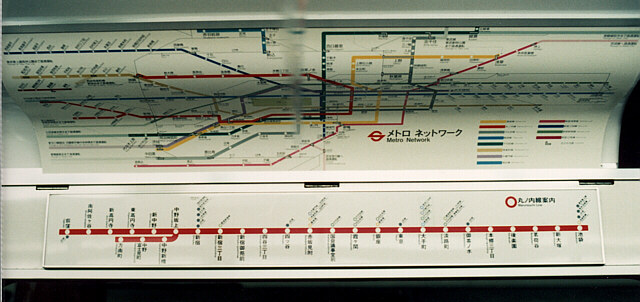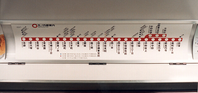 扉の上にはその路線の路線図が付いている。従来は広告枠の部分に付いていた。しかし、広告の面積をより多くするため、路線図だけは扉の真上に取りつけられるようになった。これは昭和59年頃から登場、01系の電照式路線図を意識したような感じとなった。艶があり、アクリル製である。