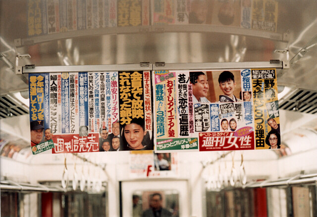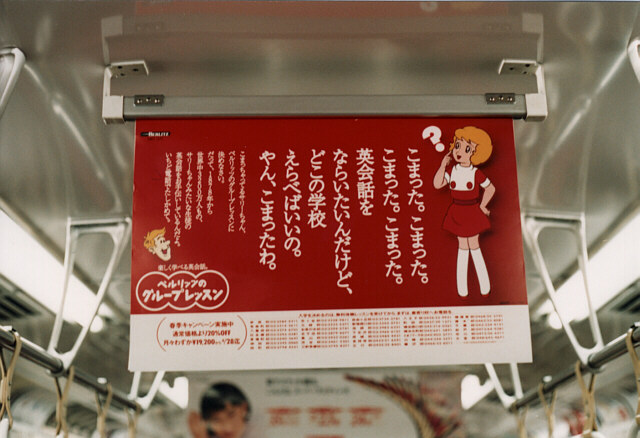 ![]() 2枚用の吊り広告受け 2枚分の細長い吊り広告も吊る(500形) |