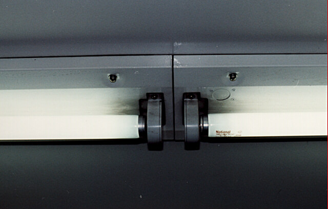 グローブのあった蛍光灯は、そのままグローブが撤去された形となり(実際は反射板を付けているが)、グローブを固定した捻子穴は化粧捻子が取りつけられた。