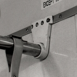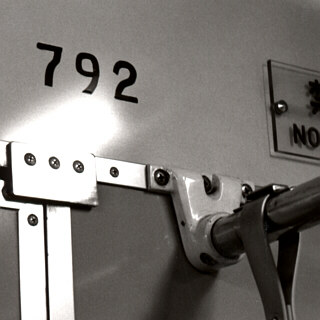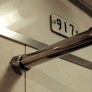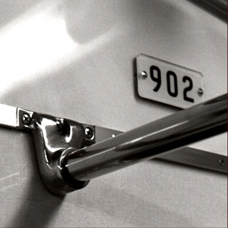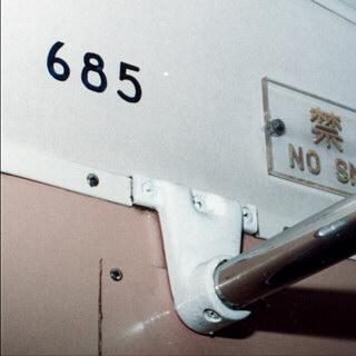 300形〜500形には下の写真の通り多くの種類の金具がある(写真で紹介したのが全てとは限らない)。これらは全て白く塗られている。なお、ネジは金属地肌のまま、白く塗装されたもののがある。900形(1)は全車が金属地肌のままの金具である。