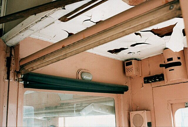 地下で運転する際は、運転席の真後ろの仕切り窓と真横に黒いカーテンを降ろすようになっている。つまり運転には1/3の空間で済み、2/3を乗客に開放することもあった。