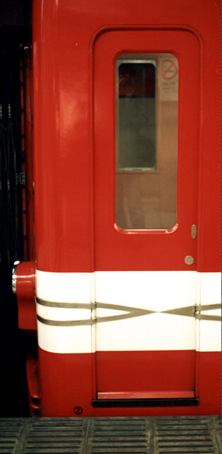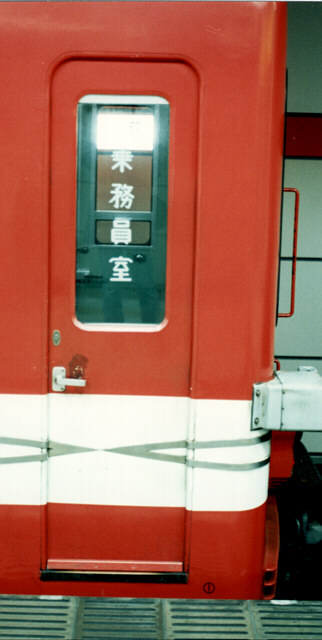 赤い電車の乗務員室扉は内側への開き戸で、窓も1段下降式(おもりはない)になっていて、鍵もある。かつては形態に変化はなかったが、1990年代に入り、先頭車の乗務員扉に変化が生じた。(多分交換されたのであろう)