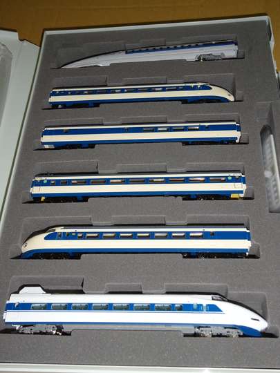 ●サクラ(後にトレーン)Nゲージシリーズ 約1/150 1200円![]() ![]() トレーンのものは「エヌゲージ」ではなく「ナインゲージ」と呼ぶ。 2011年4月まで発売され続けてきたものは22形大窓車がモデル(パンタグラフはなし、凹みのみ存在)。初期製品は流線型の脇にJNRマークが存在した。当時の他の車種がD51やEF81、クハ481の200番台にクハ103高運となっていることから、発売は昭和40年代後半〜昭和50年代前半と思われ、これもいわばロングセラーに該当するのだが、東北新幹線開業時に金型を大幅改修、200系に近づけるためにスカートがボディーマウント風、200系形スノーブロウ付きとなった(JNRマークは消える)。おそらく200系は0系のものを流用・共用したものと考えられる。またドクターイエロー塗装も0系改修後そのままの色替えで後年販売となった。前灯表現は砲弾状、光前頭は銀色。足周りが車体に比べて大きめに出来ており、0系の場合、腰高感がある。平成14年には0系がJR西日本「こだま」新塗装に改められ、従来塗装は絶版となった。ドクターイエロー(922形タイプ)もT4(923形)の発売で絶版、200系は、後年200・2000番台風の100系車体を用いたものに代わった。また、かつては0系も中間車が売られていたそうだが、早々と絶版になった。 塗装はウッド製に比べて丈夫らしい。少々乱暴な扱いをしてもはがれにくい。少なくとも焼付け塗装をしていることも影響か? 筆者所持の初期製品(子供だったので結構遊んだ)も塗装のはがれはほとんど見られない。また車体と床板・窓との接合は+のネジを用いており、ドライバーを用いれば容易に分解することが出来る。床板はプラスチック製。 現在のトレーンは昭和58年創業。ヨネザワの子会社だったサクラ(現在解散)から独立したもので、トレーンになってから積極的な商品展開をしたのか、昭和60年頃からウッド(ニシキ)製に代わるかのように駅売店や玩具店など至る所で売られるようになった。ただ、種類が増えすぎてしまい、0系は種類豊富な箇所でないと入手は難しい。 0系が東海道から引退した平成11年9月18日には、東京駅東海道新幹線14・15番線ホーム売店のトレーンのNゲージシリーズの吊り下げ棚が全部0系になった。 一見忠実なスケールダウンのように見えるけれど、新幹線では車種によっては窓が1個分少なかったり、またその逆(小田急ロマンスカーNSE車、HiSE車など)もある。下回りもある程度共通化が図られている。 このシリーズはトレーンとなった現在も精力的に製品化がなされ、種類も約80種類と多い。新幹線では0系大窓車フレッシュグリーンと共に、100系(123形9000番台)小窓車フレッシュグリーン、100系2階車両(149形9000番台、絶版)、300系、400系、WIN350、500系、E1系、E1系(新色)、E2系(あさま、やまびこ/はやて)、E2系1000番台(はやて)、E3系(こまち)、E3系1000番台(つばさ)、E3系(つばさ新色)、E4系、E4系(新色)、700系(のぞみ)、700系レールスター、N700系(のぞみ、みずほ)、N700A系、N700S系、E5系、H5系(帯色違い)、E6系、E7系、N700S(のぞみ)、923形、E926形とほとんど全種類揃っている。試験車(検測車)の窓の少なさ、またN700系では「のぞみ」と「みずほ」の窓の数(前者13枚、後者12枚)の違いもきちんと作り分けられている。700系に関しては「のぞみ」「レールスター」共に中間車も存在する。最新のN700系は、量産先行車の先頭車がトレーン製ながら外国生産かつJR東海エージェンシーの企画品で1490円で出し、後に一般市販品として国産で製造・販売された。 しかし800系に限っては商標の関係からか売られなかった(代わりにJR九州商事から1890円で売られている。トレーンとは無関係らしい)。 これら新幹線は、先行車が出た時点で製品化し、そのまま変えないパターンが多かったので、100系が小窓、300系が試作車の流線型形態など鉄道模型とはまた違った魅力があろう。ただE2系のように1000番台を改めて作ったりもある。 最近は江ノ電(連接車)や箱根登山鉄道モハ2形(全長が短い)を出したり、線路付きのトラムシリーズ(路面電車)を出すなどラインナップがマニアック化し、今後どうなるか益々分からなくなった。 トレーンはレールやマットなど線路回りも発売。バスシリーズも少数かつ大型(HOスケール?)ながら「ポケットバス」シリーズとして展開しており、完全にウッド(ニシキ)のお株を奪った格好となった。 長らく840円の時代が続いたが、「塗装工程の増加」「鉄道会社許諾料の発生」などを理由に平成15年3月から945円、平成20年4月以降生産分から1050円になった。現在は更に値上がりして1200円(多分税抜)となっている模様。現在も国産を維持、平成18年頃になって一部が外国生産に移行したが、全面移行には至っていない模様。 令和3年当時の価格は1200円+税。1320円となる。まだまだ新製品を出し続ける勢いである。 ![]() 平成16年10月には東海道新幹線開業40周年を記念して、0系従来塗装、100系従来塗装(先頭車と2階建て車)を復刻した3両セットを3129円で発売。7月のJR東海浜松工場公開時に同所で先行